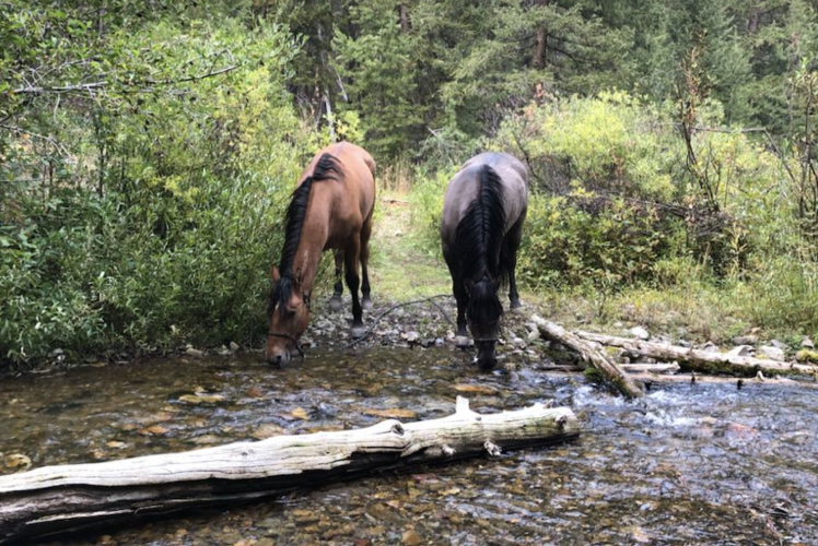 (A picture of the mustangs drinking while on a pack trip in Idaho)