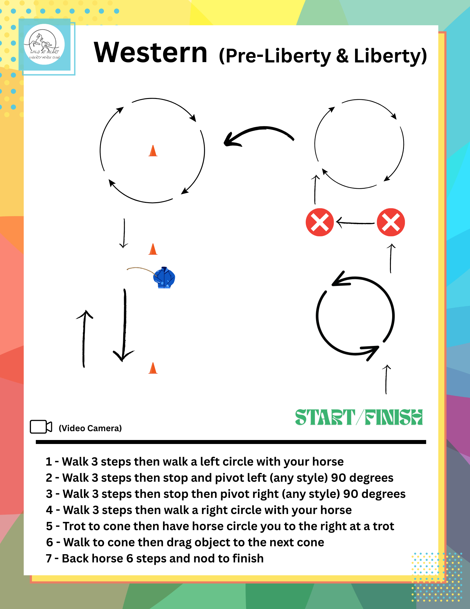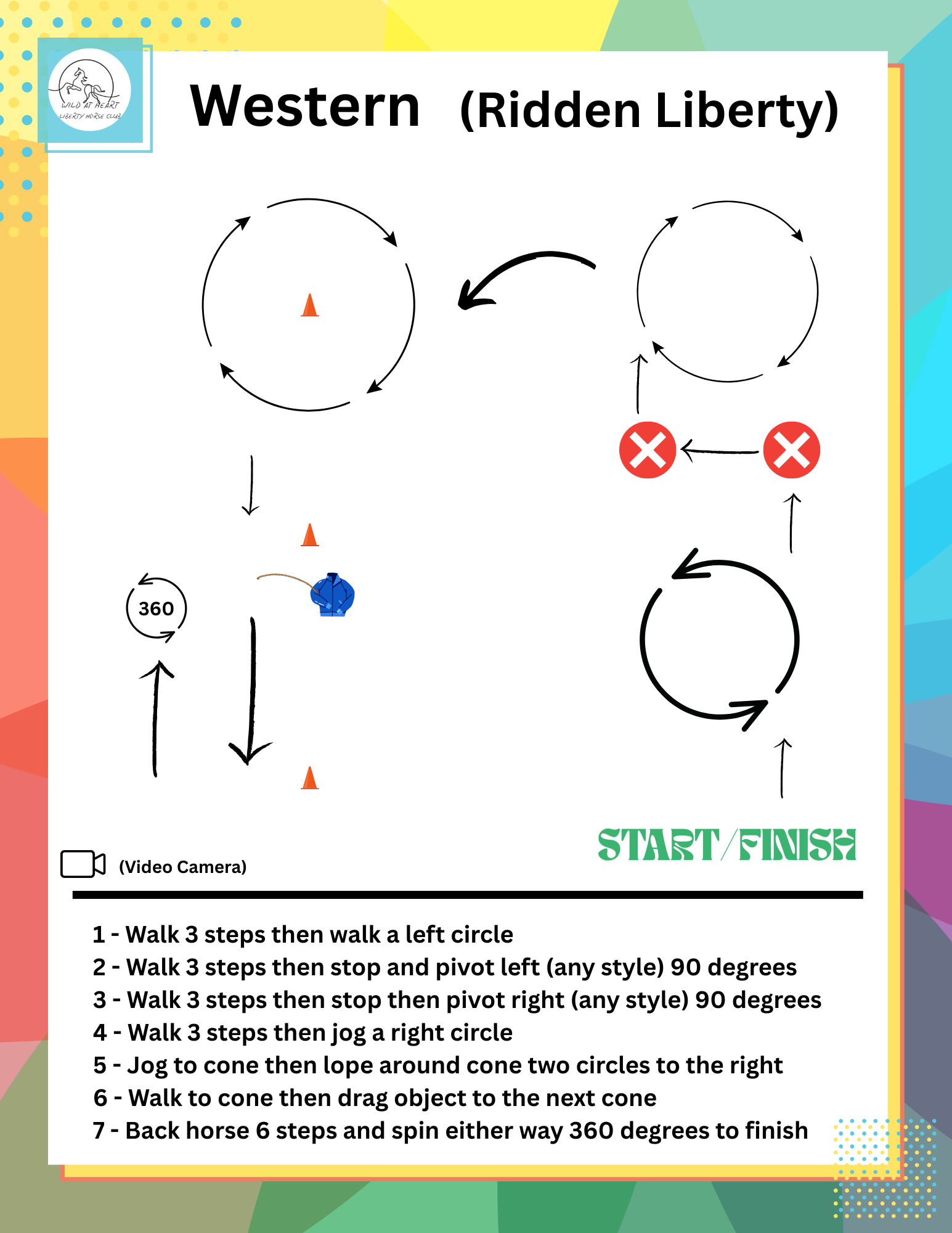 -Western: Complete a pattern of western-focused things such as reining, spinning, western pleasure, dragging logs, simple trail obstacles, etc.