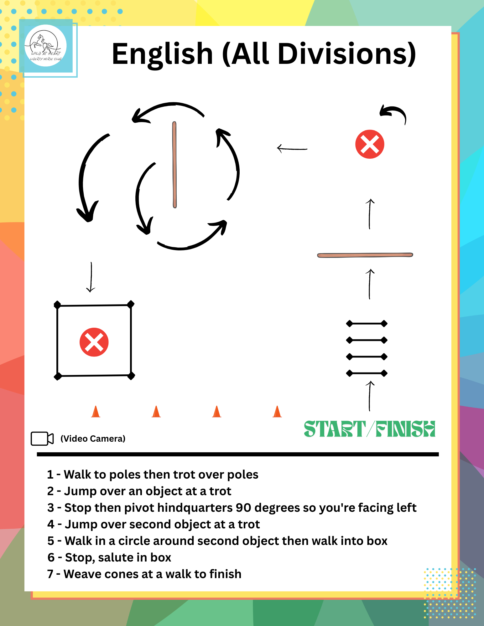-English: Complete a pattern of English-focused things such as jumping (no height advantage, you can jump a pole laying flat on the ground), dressage, spanish walk, etc.