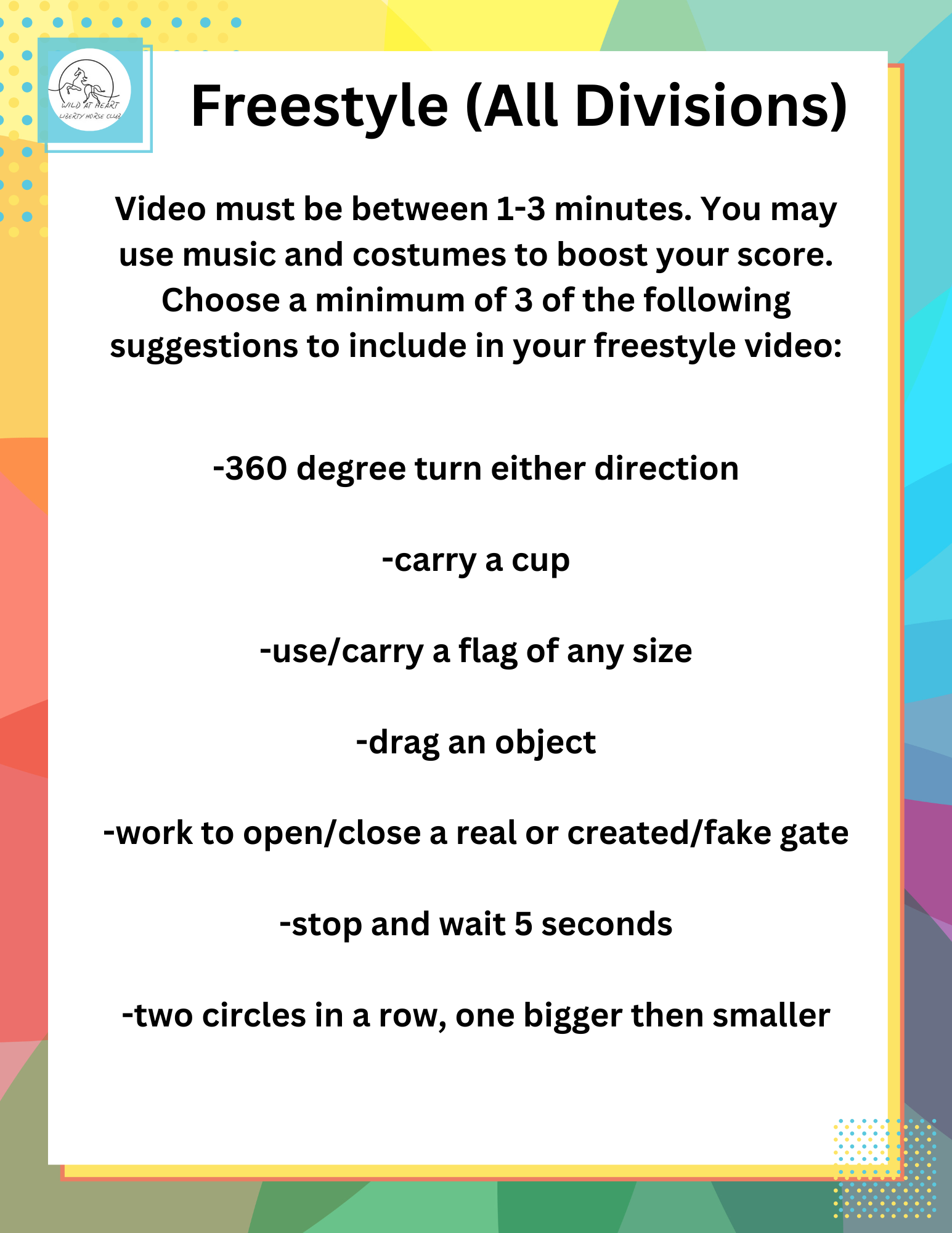 -The shows will be virtual, meaning you will record your class on your own device and upload the video to YouTube and then submit a link to your video to whitmirefamilyranch@gmail.com.